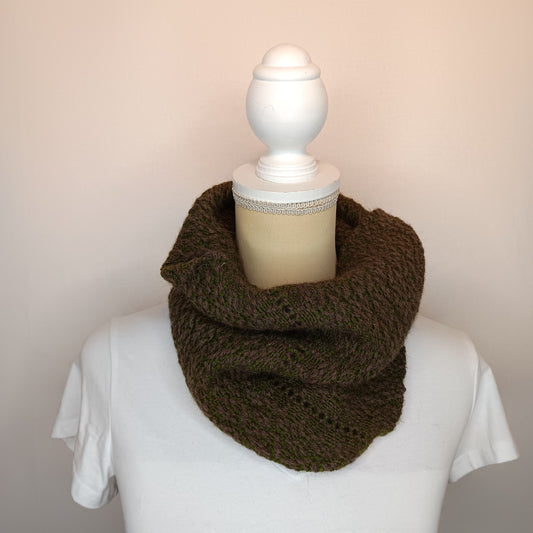 Col de laine vert et marron – tissage artisanal mérinos et alpaga