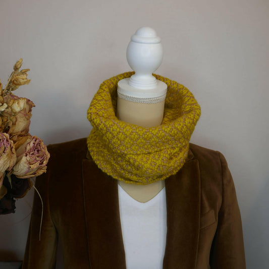 Col de laine jaune et beige – tissage artisanal laine et alpaga