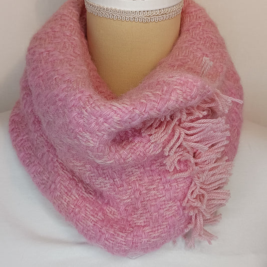 Col de laine rose - tissage artisanal , Mérinos , Soie et Baby-Alpaga