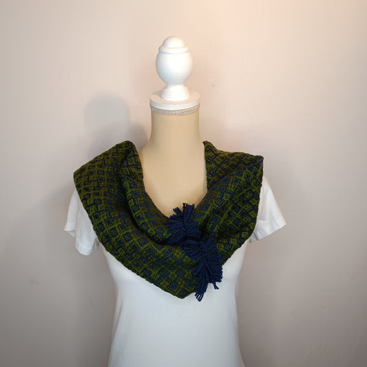 Col de Laine marine et vert mérinos - tissage artisanal-