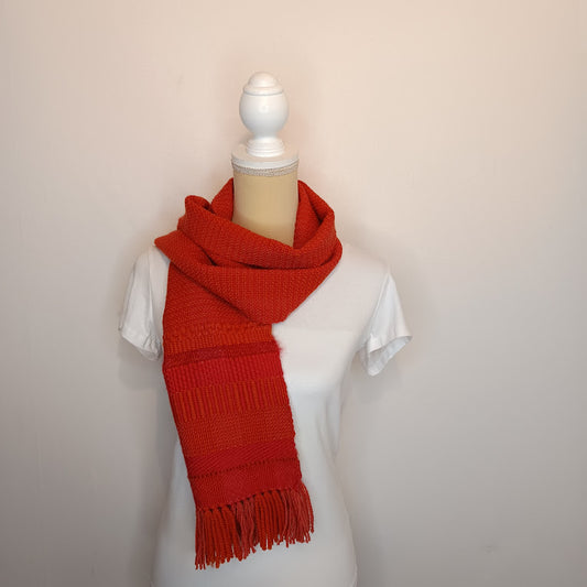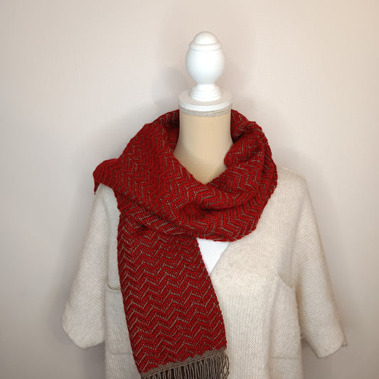 Echarpe rouge et marron en Mérinos et Soie - tissage artisanal